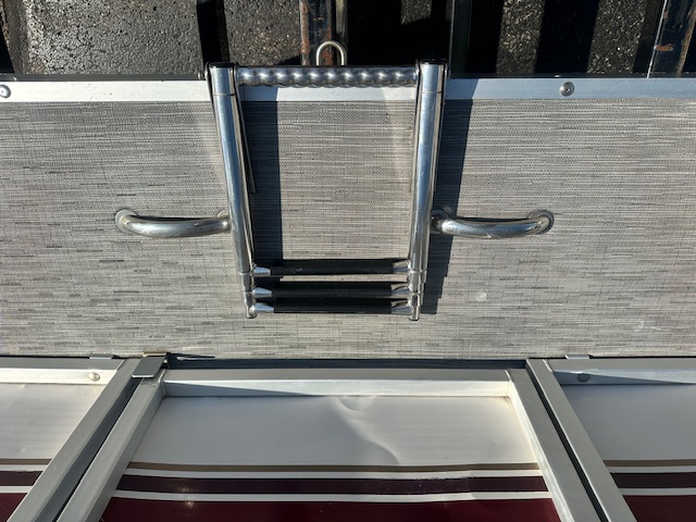 - Bow-Mounted Folding & Telescoping Swim Ladder Includes grab handles for easy boarding after a dip in the lake.