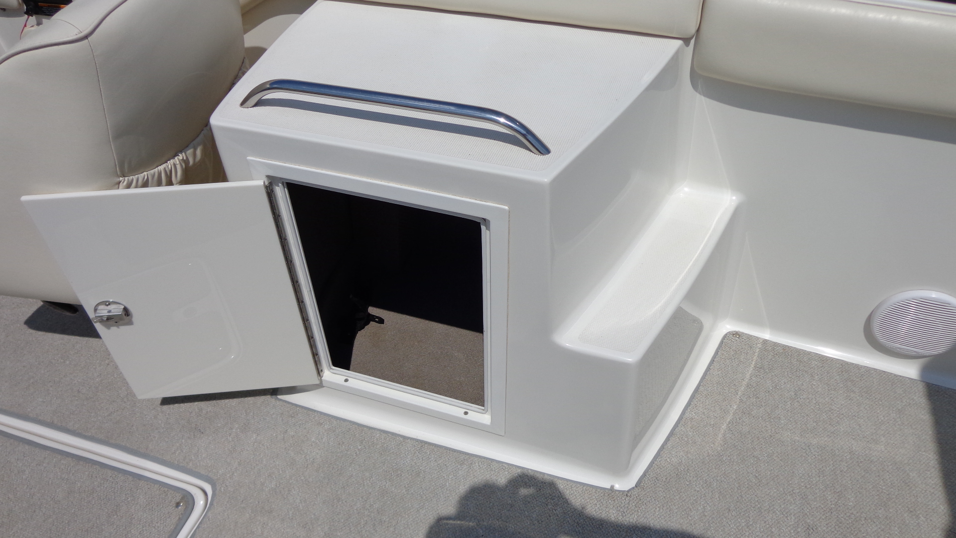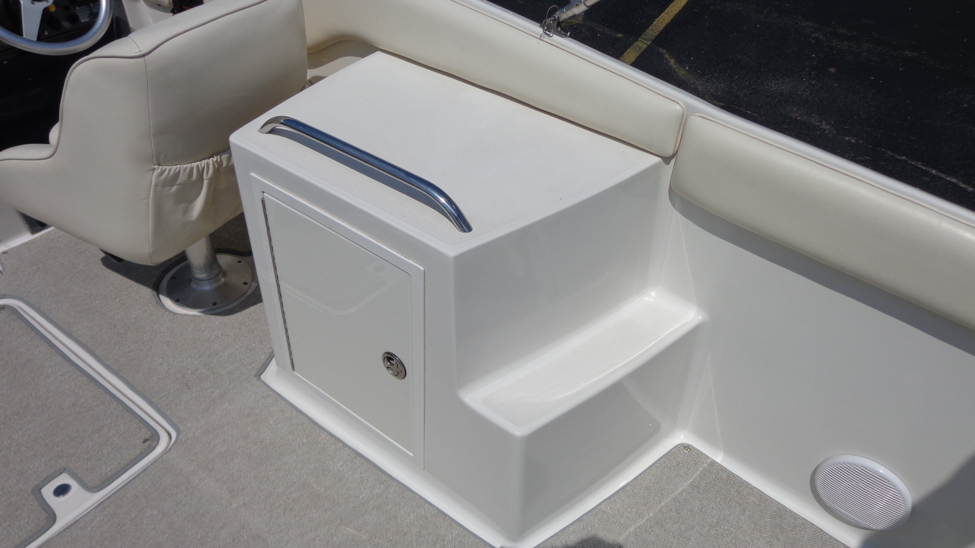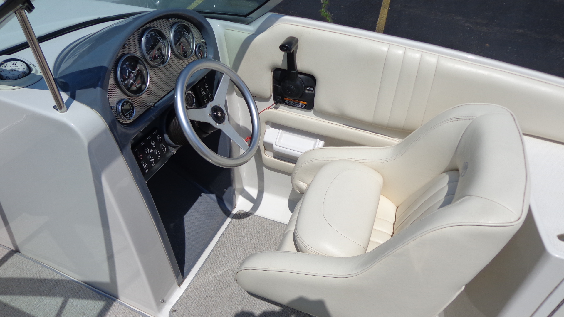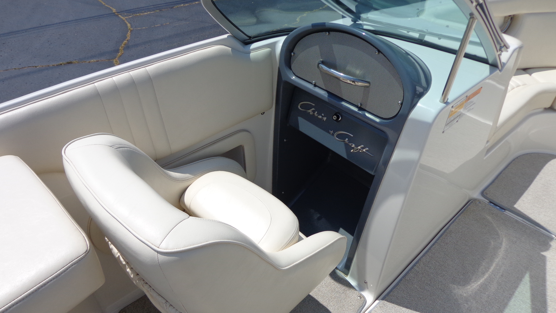 Comfort Upgrades: Snap-in marine carpet, dual swiveling captain’s chairs, and spacious open bow seating