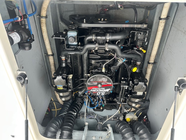 - Powerful & Reliable: MerCruiser 5.0L TKS V8 (220 HP) paired with Alpha One outdrive – smooth performance and quick to plane.