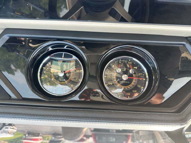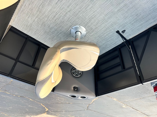 This Lago X20 F features all-black walls with Leon Truffle Day interior upholstery and Thatch woven vinyl Flooring. A power bimini top with boot and canvas that matches perfectly all black too. The Interior comes equipped with a livewell, sink with faucet, and rodholders. The Helm features a Lowrance HOOK Reveals 5SS GPS, Sonar & Fishfinder and a Clarion CMM-30 Bluetooth Stereo with 4 Marine Speakers. Tackle boxes with dedicated storage and lots of other kinds of accessories storage options too. Cockpit table that is removable for convenience. Multiple USB/USB-C ports throughout the boat also. Powered by a Mercury 90 ELPT Command Thrust 4-stroke Outboard Engine.