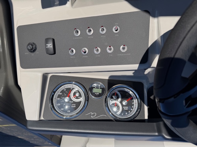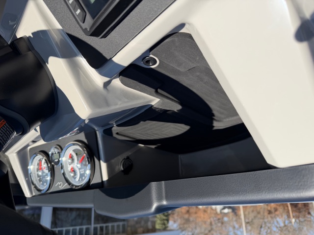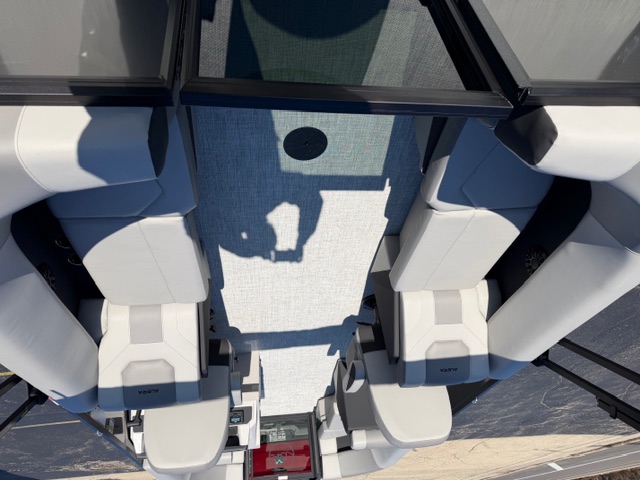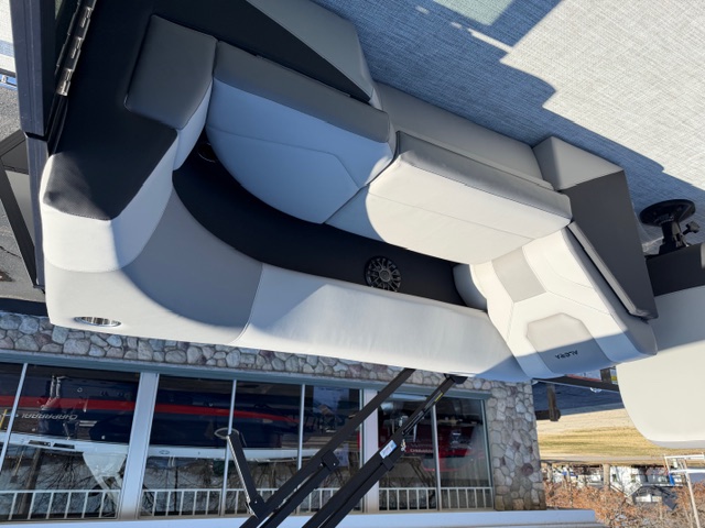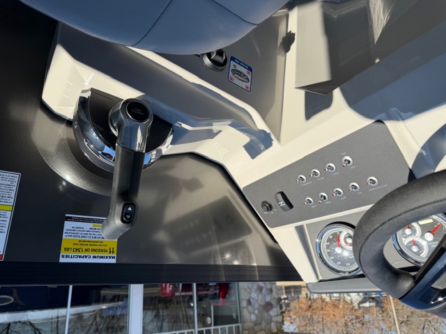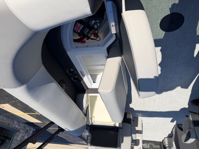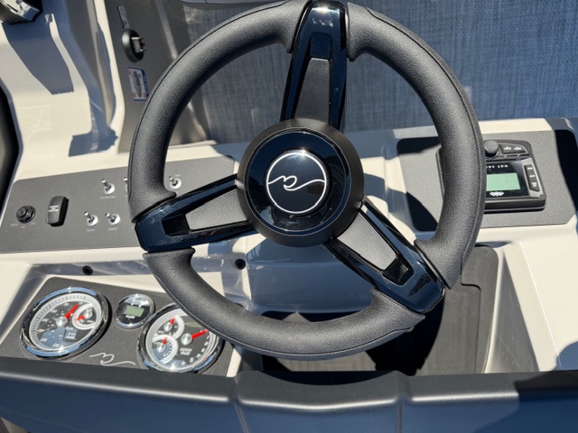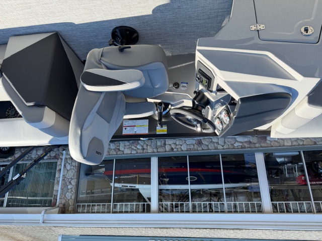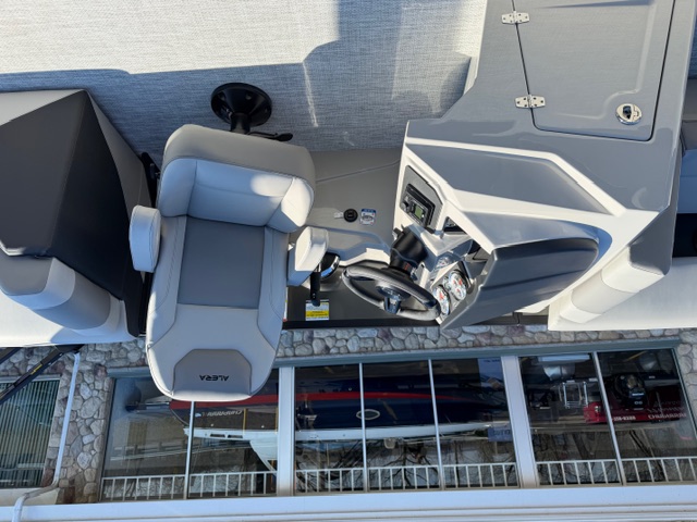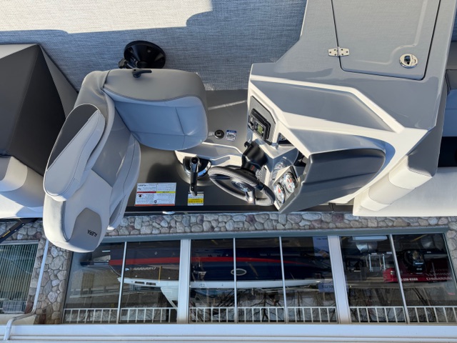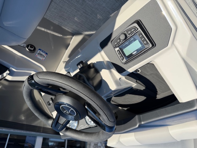 Step into the helm and you’ll immediately notice the upgrade. The full fiberglass ergonomic console comes standard, equipped with digital multifunction gauges and an in-dash depth finder, delivering a premium driving experience that rivals many mid-level luxury pontoons.