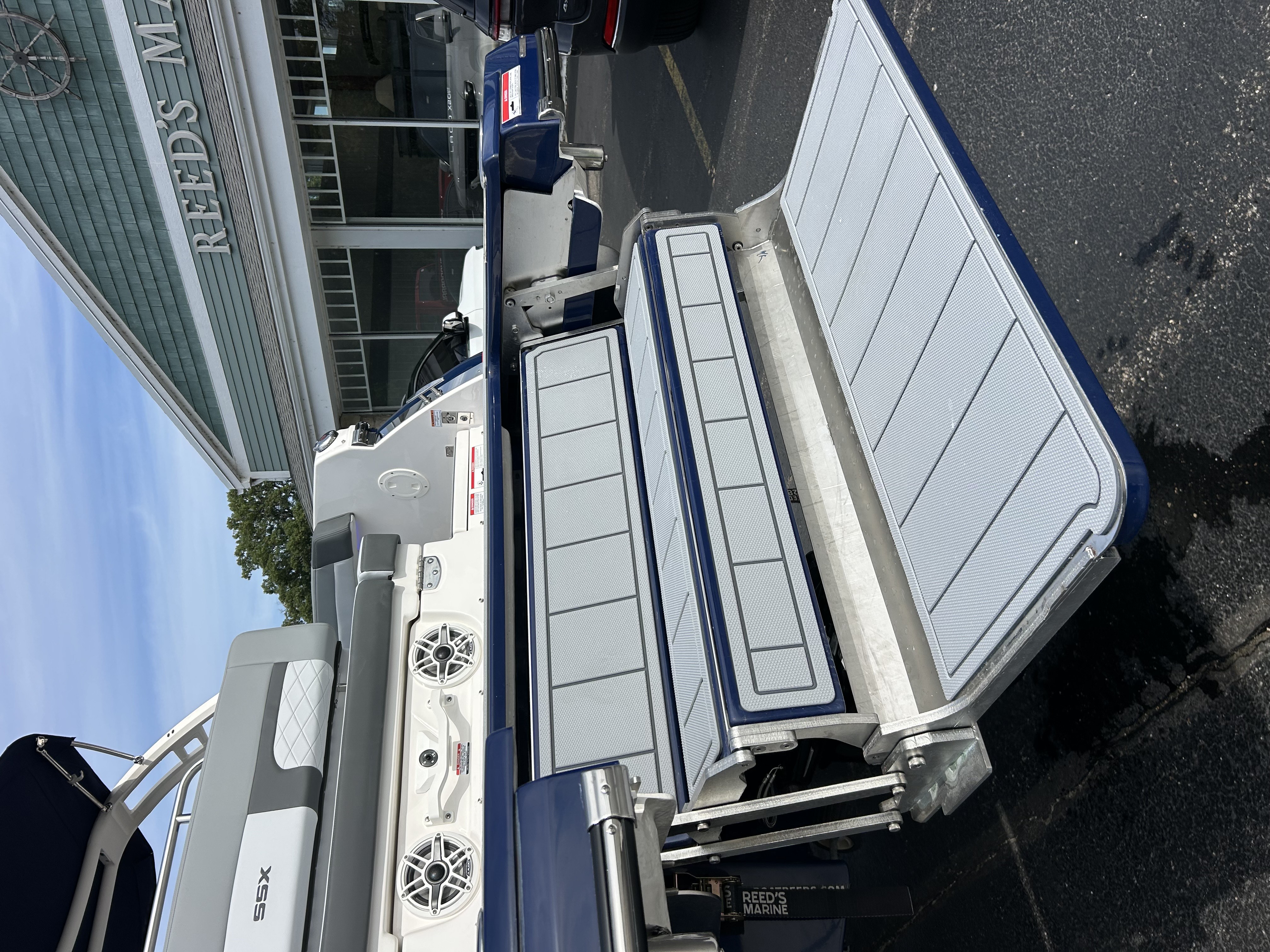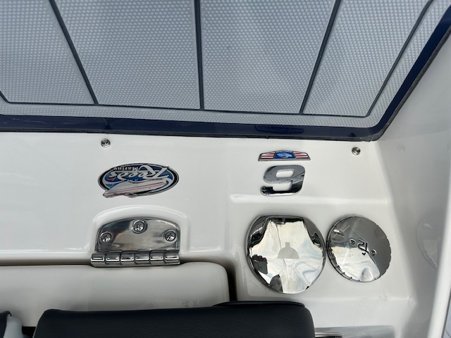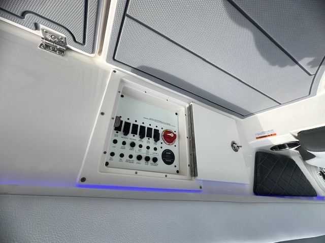 Step aboard and immerse yourself in the Envision SiO Silicone Lunar Interior, complemented by Slate Seadek Snap-in Flooring for both comfort and durability. The upgraded JL Audio Sound System, featuring an 800 Watt Amp and a powerful 10" subwoofer, delivers concert-quality sound. Blue LED backlit speakers and blue ambient LED lighting throughout the cockpit create an unforgettable atmosphere for evening cruises and entertaining guests.