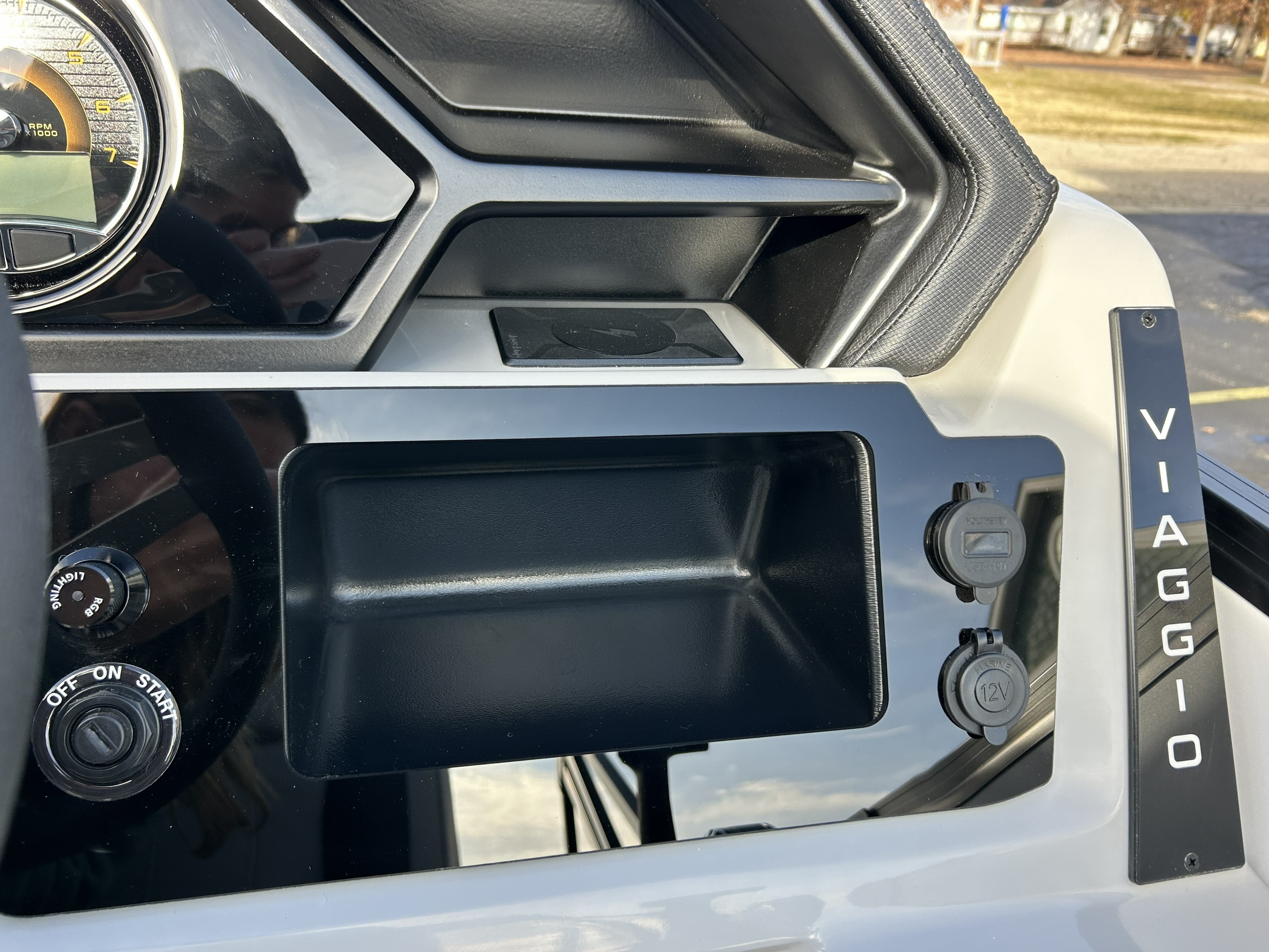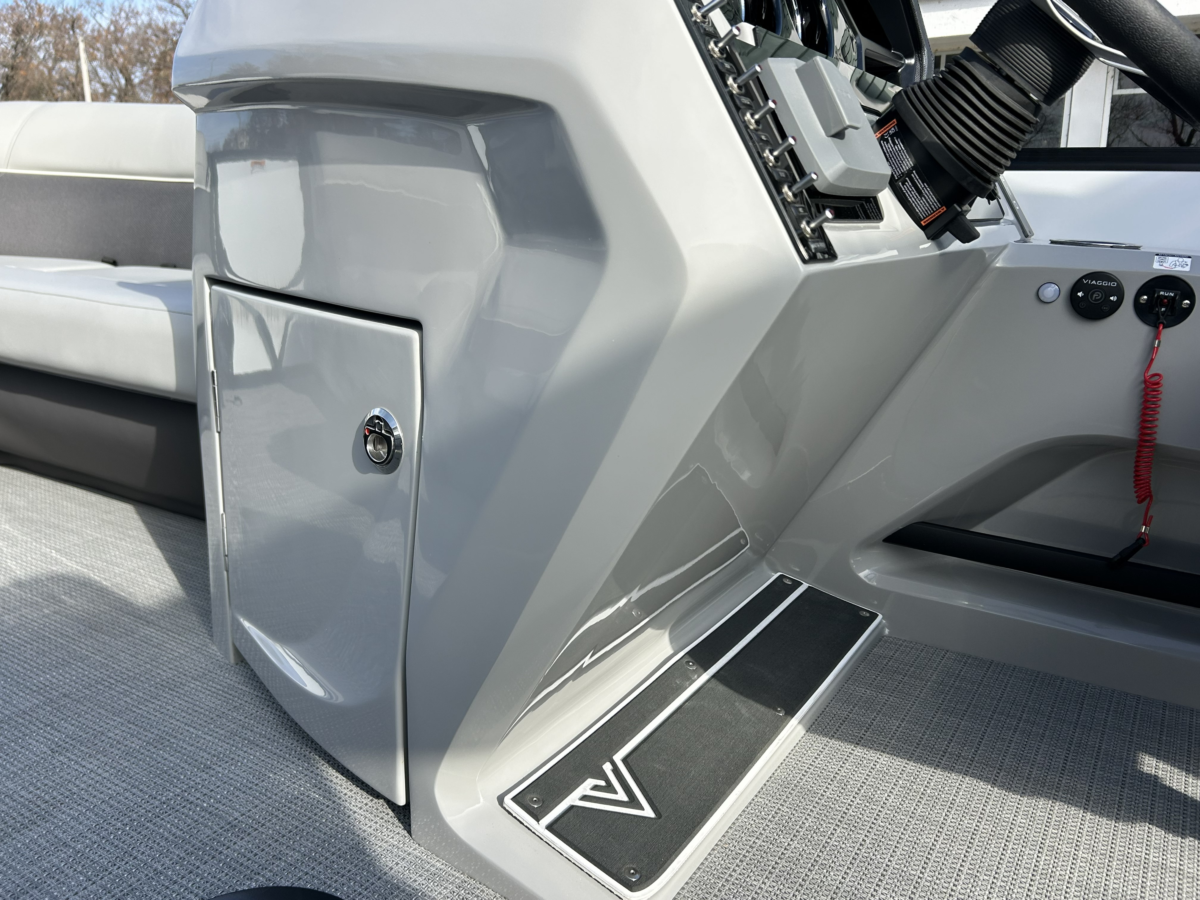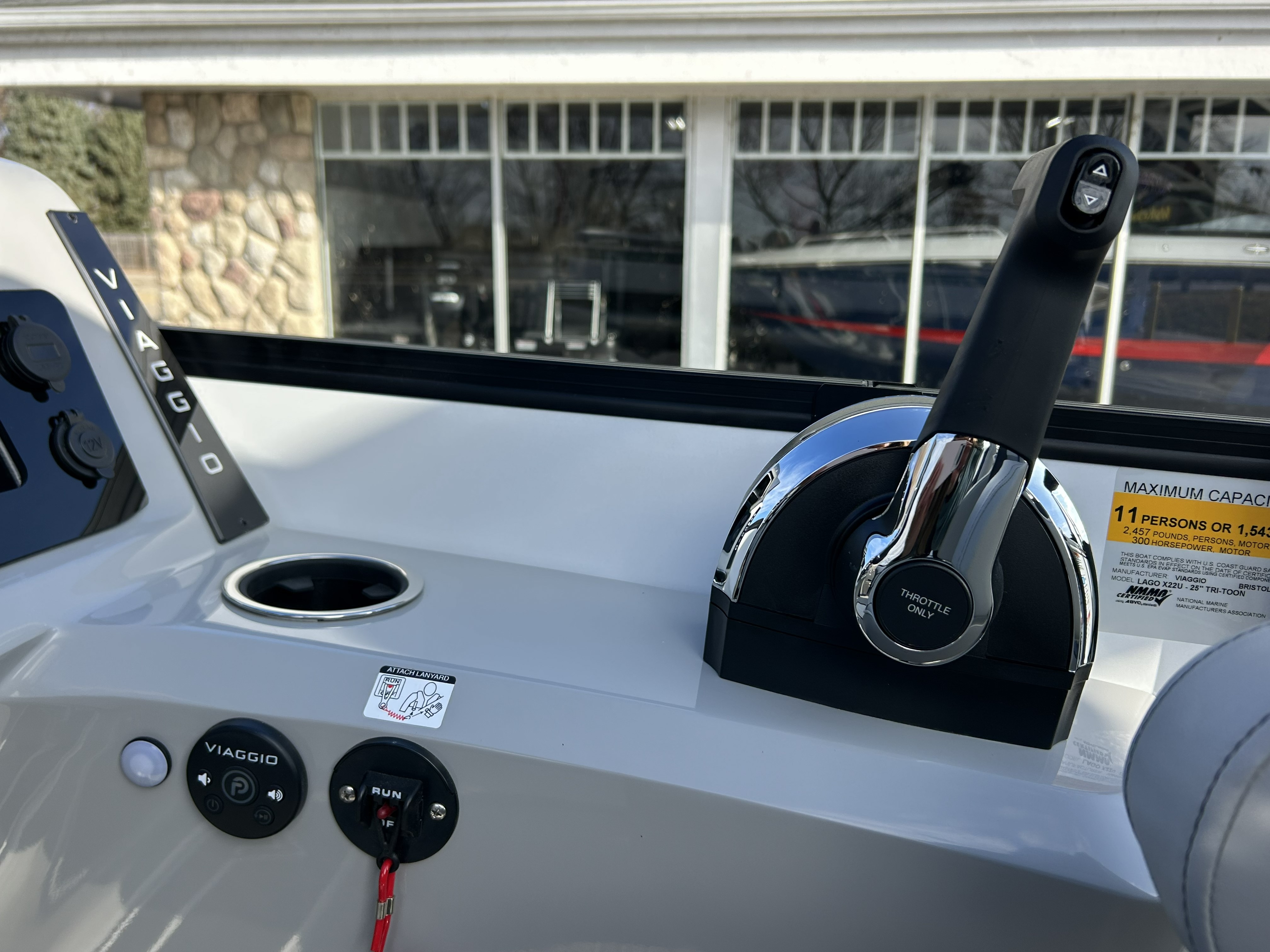 Turn heads on the water with this brand-new 2026 Viaggio Lago X22U Tripletoon, beautifully dressed with 25" white wall tubes, an eye-catching Aruba Green exterior stripe, and bold Black 2" rails. This boat blends modern styling with Viaggio’s renowned craftsmanship for a sleek, confident presence from every angle.