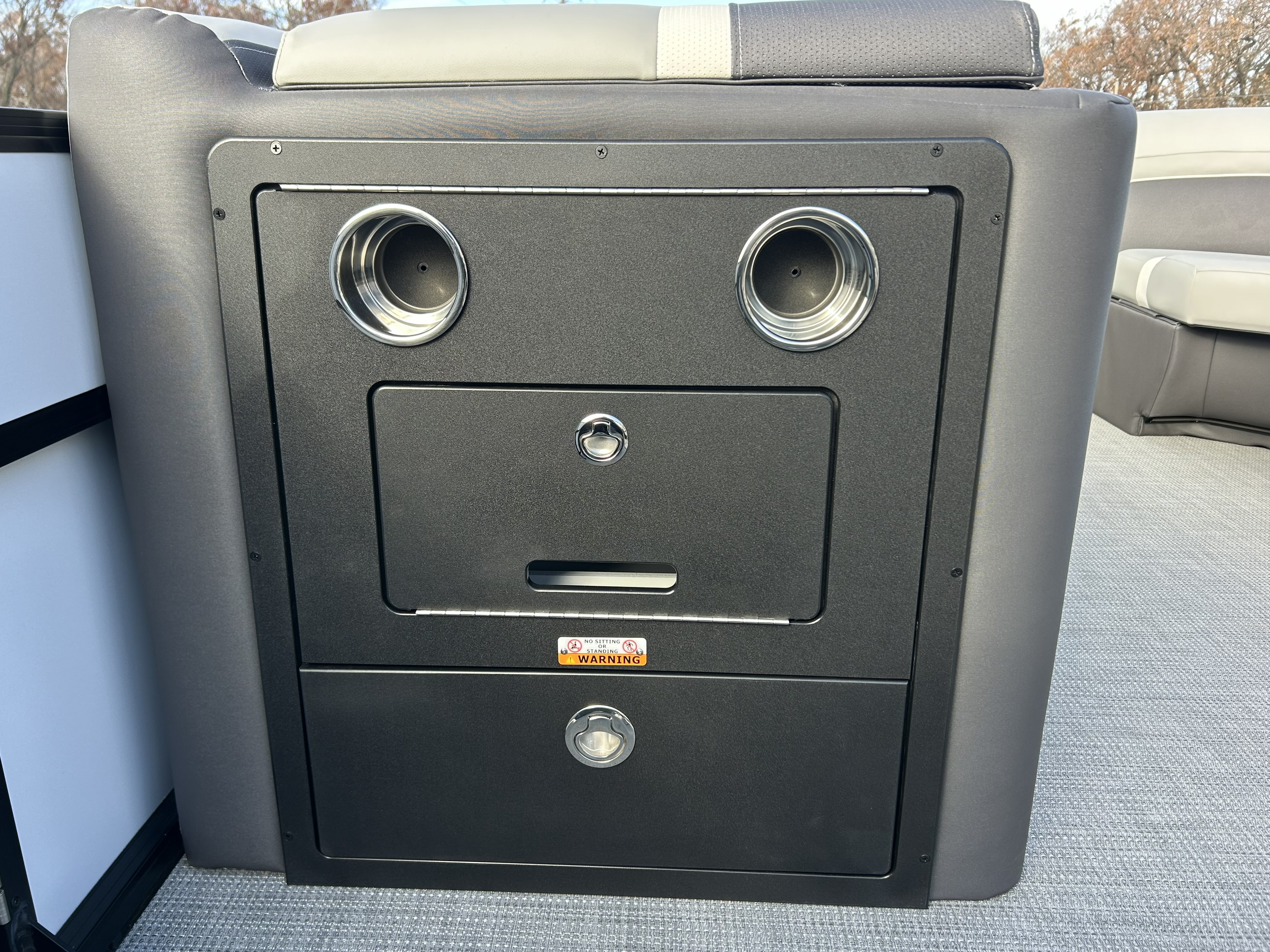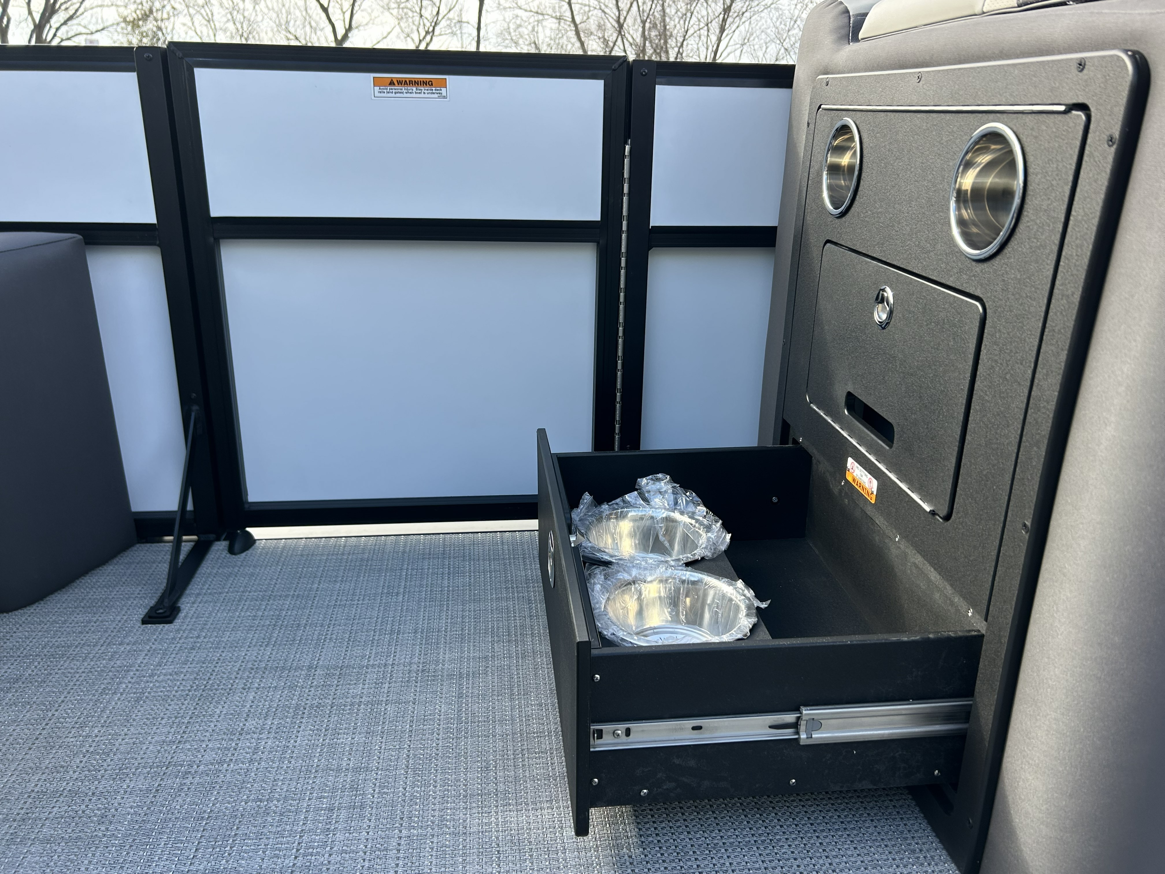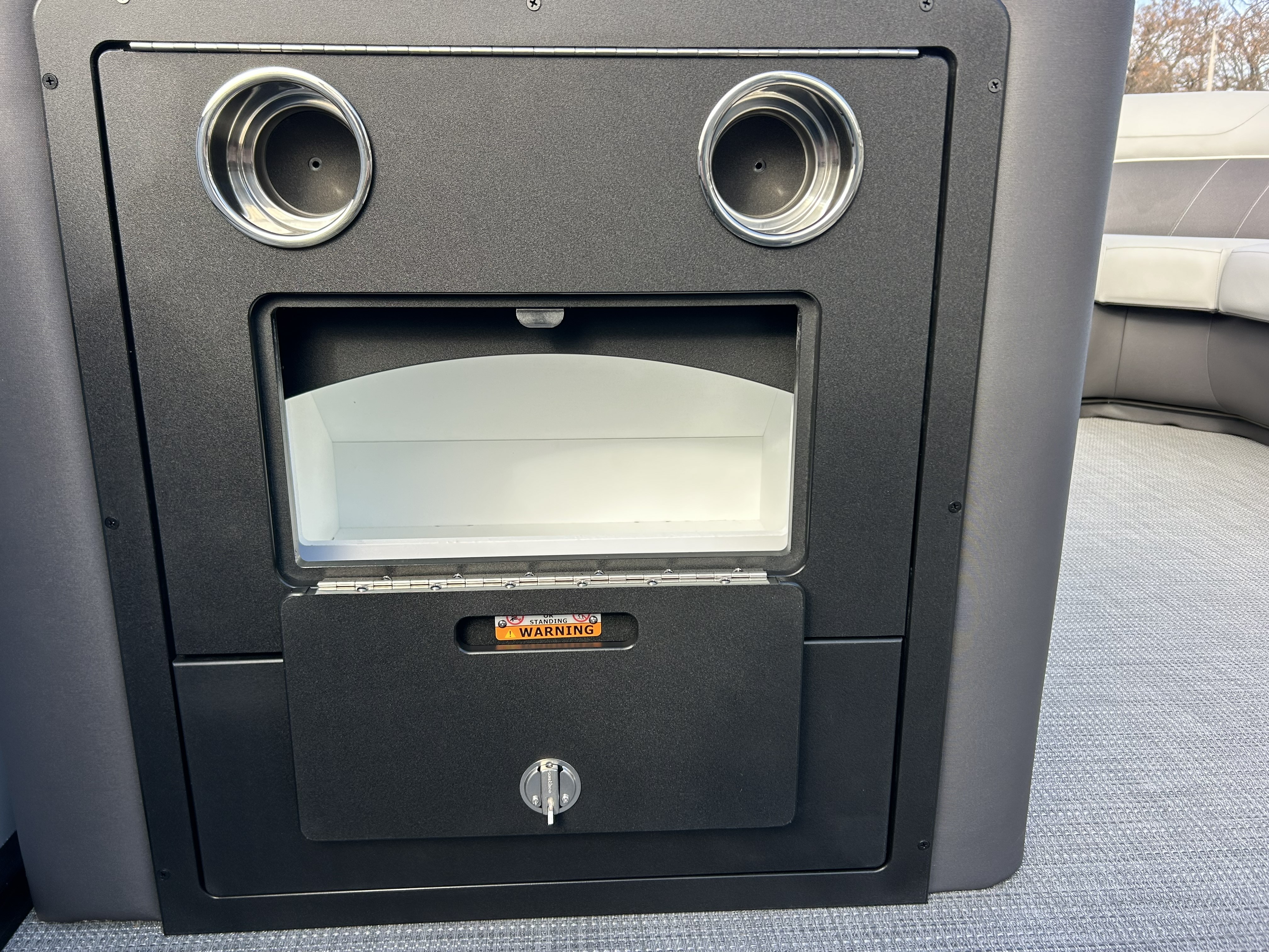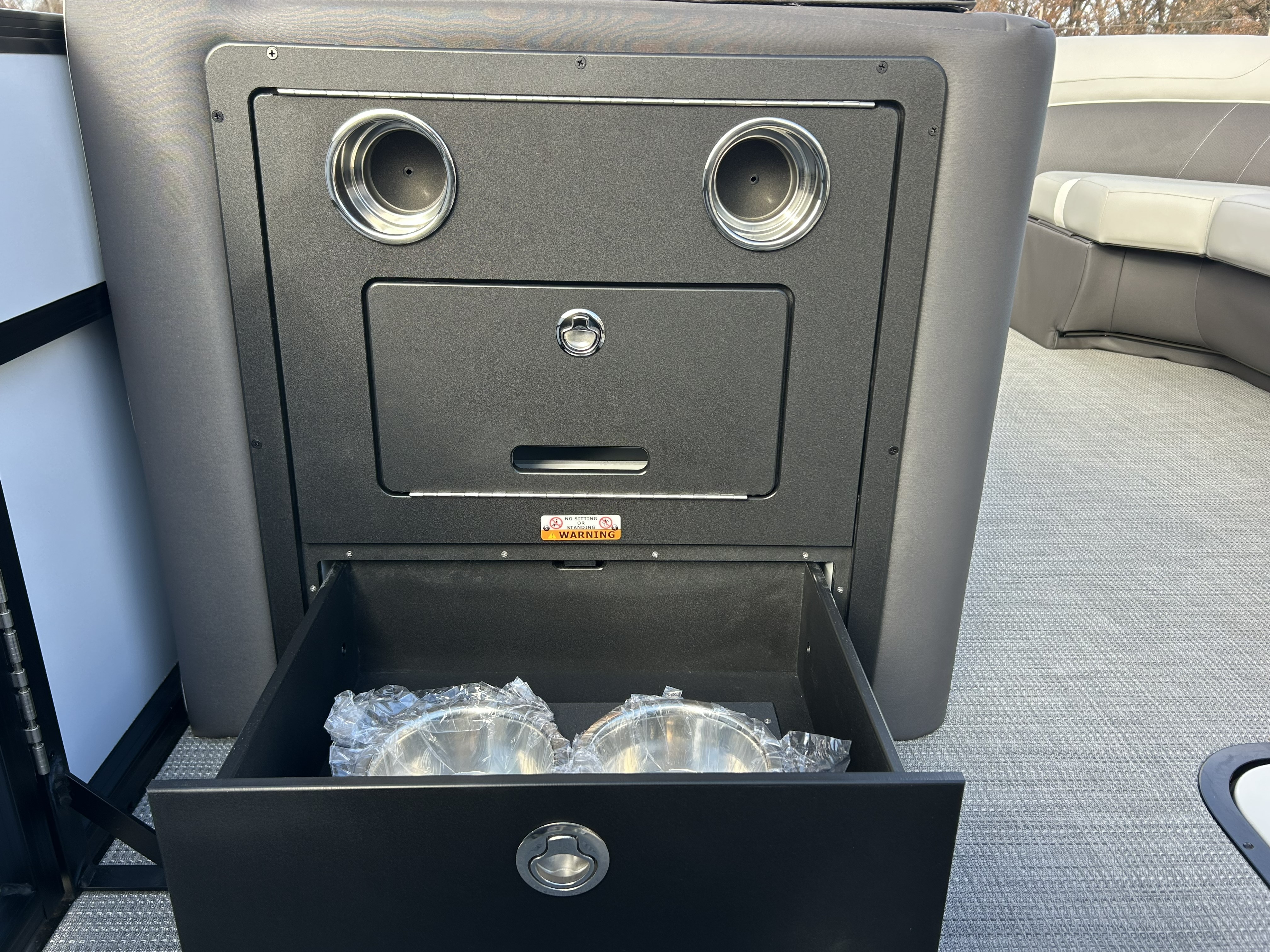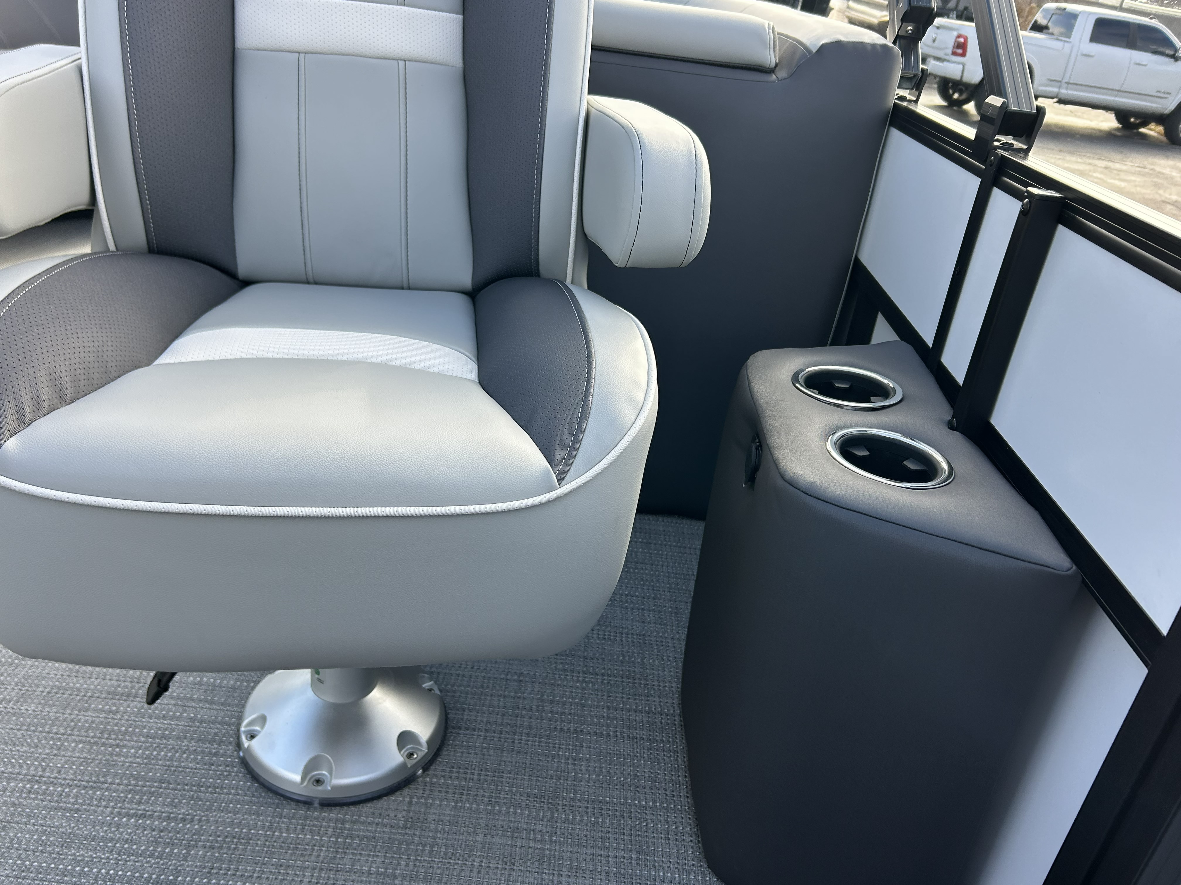 The center-toon in-floor storage provides the large, deep space every boater appreciates, perfect for stowing water toys, lifejackets, and gear. When the sun starts to set, the boat transforms with the RGB Interior Light Package, illuminating the speakers, cupholders, seat bases, and toe-kicks in customizable color.