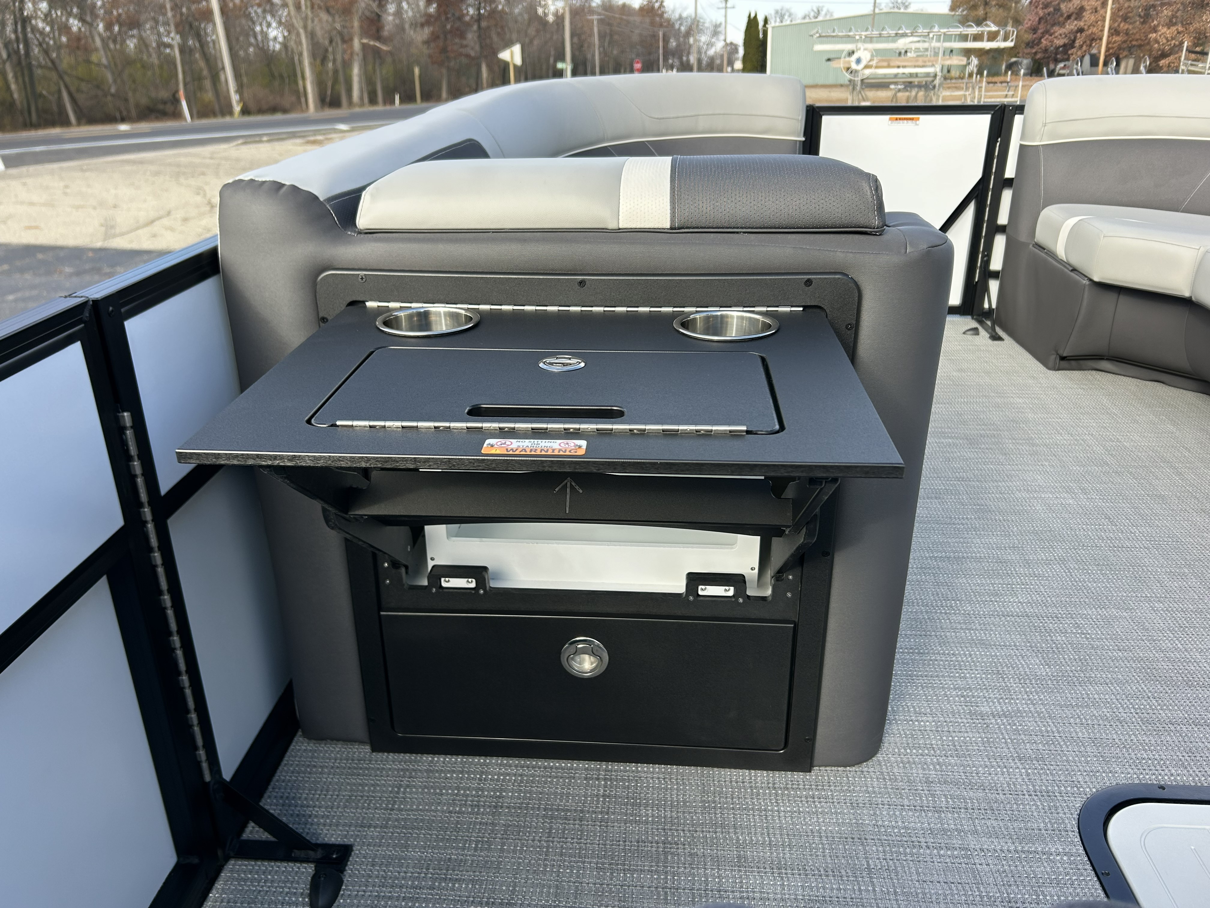 Up front, the Black Rubrail houses integrated LED navigation and docking lights, giving you high visibility and a clean, seamless look. Stainless steel pull-up cleats deliver durability and convenience. At the stern, the swept-back Xtreme Ski Tow (black) is ready for tow sports, tubing, and family fun.