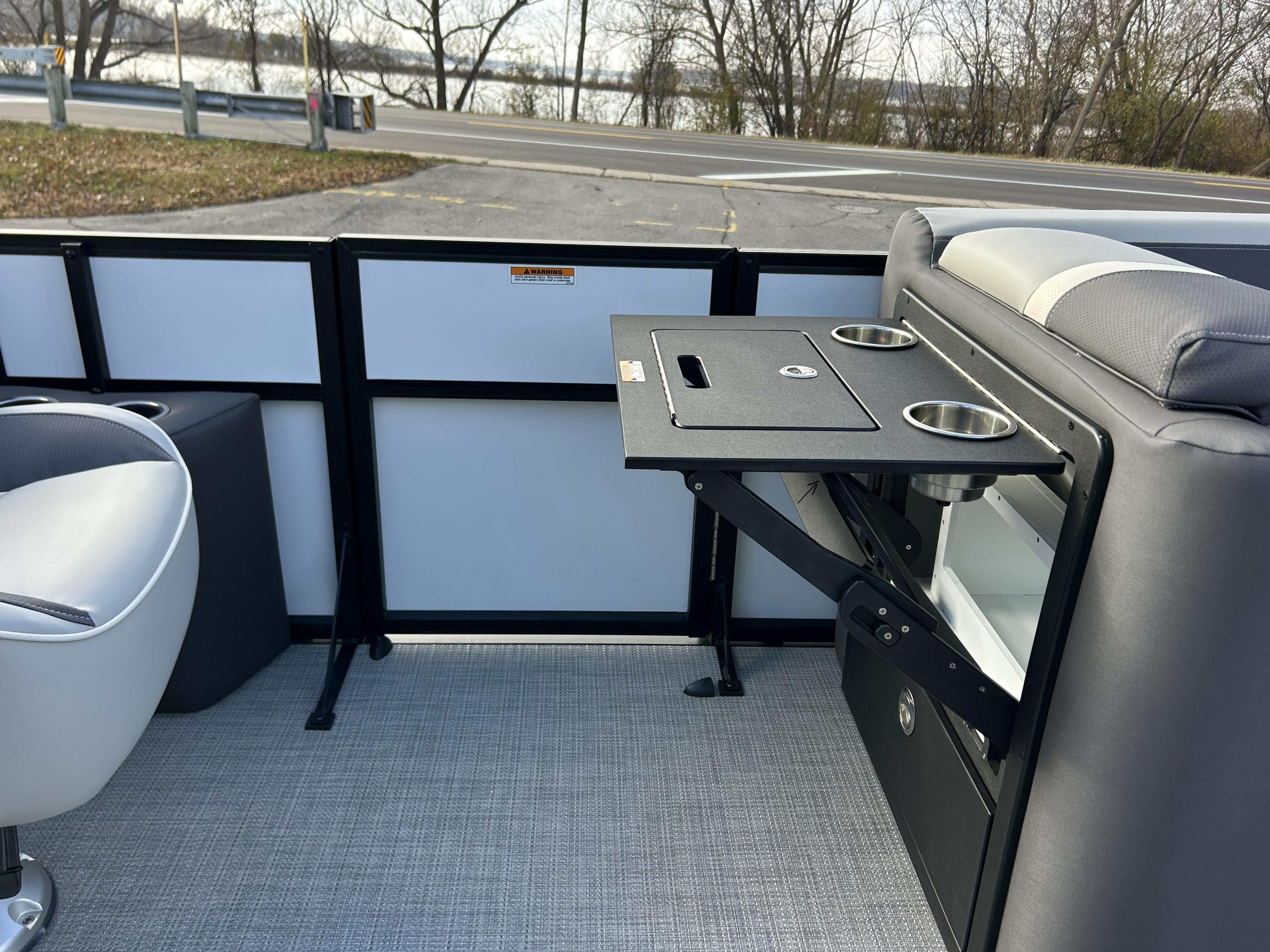 Step aboard to a beautifully designed interior wrapped in Leon Greyson Grey Day Furniture, featuring elegant two-tone greys with a clean white accent. The deck is finished in Luna Gunmetal vinyl weave flooring - soft underfoot, stylish, and virtually maintenance-free.
