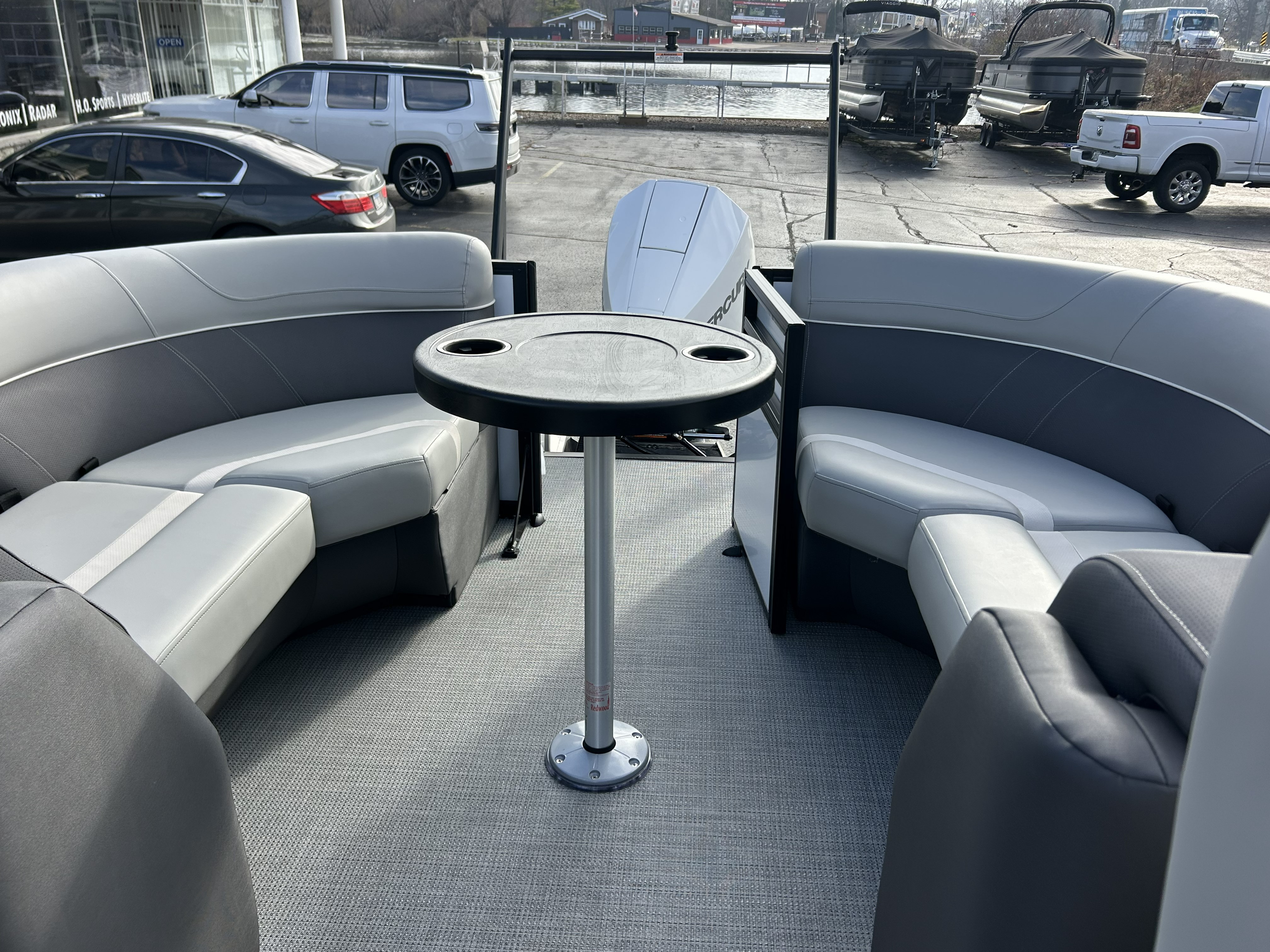 Power comes from a Mercury 200XL Cold Fusion White 4-Stroke Outboard, perfectly matched to the boat’s color palette and equipped with a stainless steel prop for crisp acceleration and dependable performance.